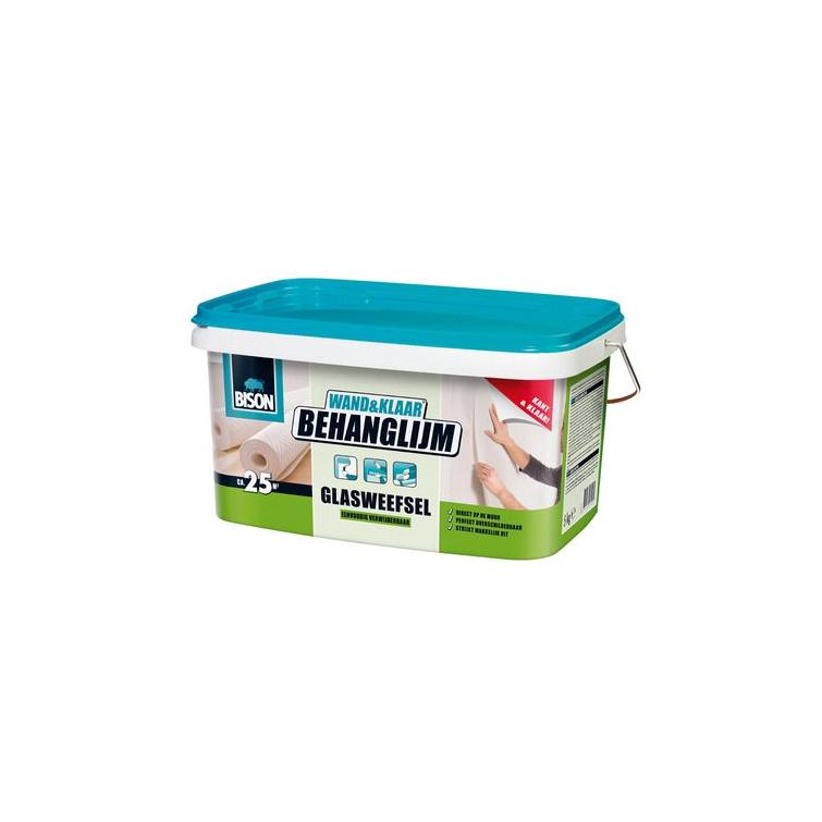 Kant en klare Bison behanglijm. Voor het eenvoudig aanbrengen van glasweefsel- en glasvlies behang op poreuze, zuigende ondergronden zoals stucwerk, steen, beton, cement, gipsplaat en hout. Indien volgens de gebruiksaanwijzing aangebracht, is het behang later eenvoudig te verwijderen. Direct klaar voor gebruik en op de muur aan te brengen. Deze behanglijm droogt transparant op. Strijkt makkelijk uit en is onbrandbaar. In handige vierkante emmer, zodat je direct met de roller in de emmer kunt.