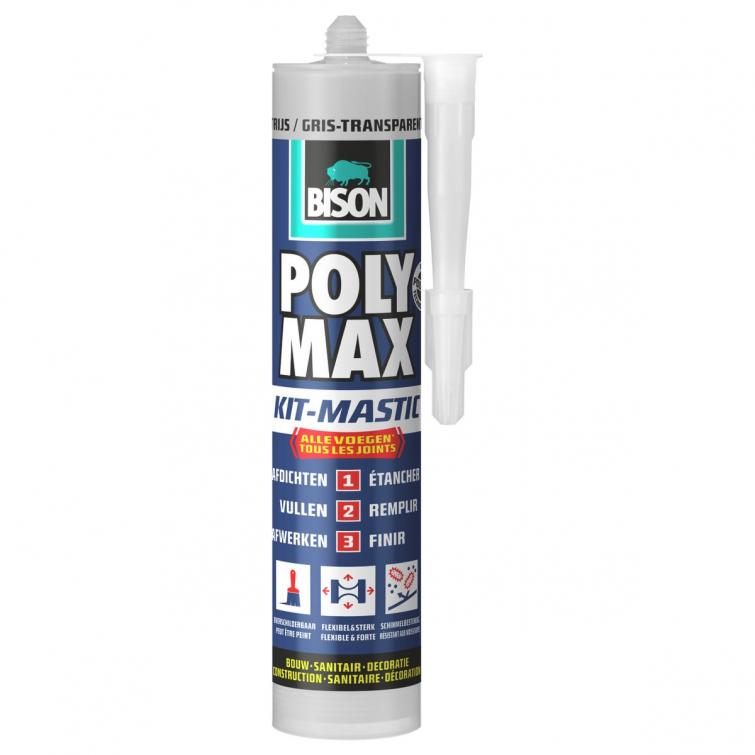 Bison Poly Max Sealant afdichtingskit elastisch transparant grijs 280ml