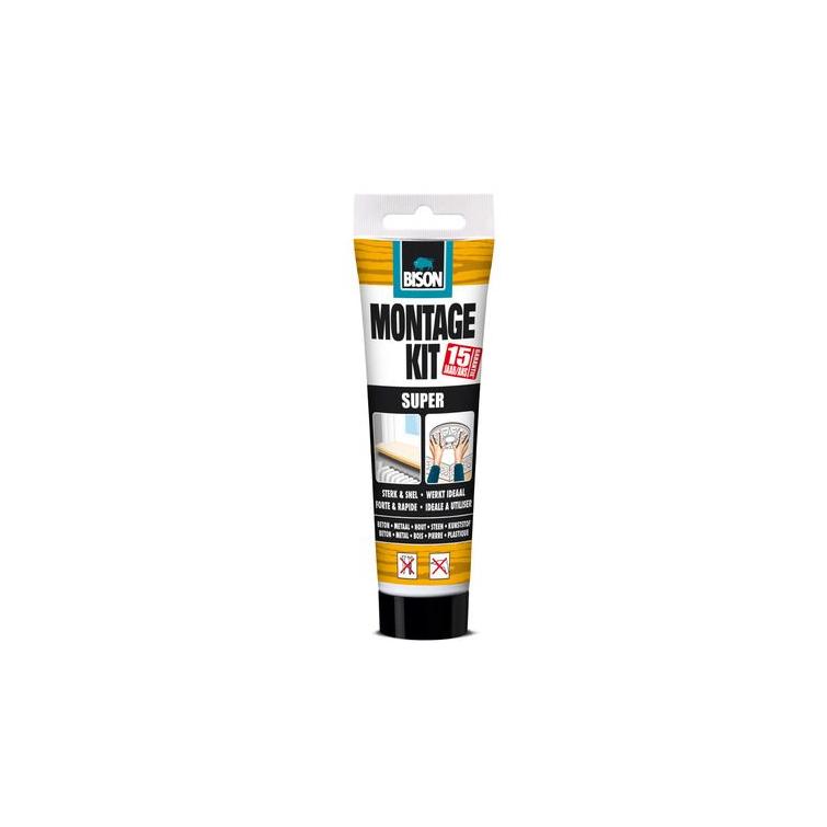Montagelijm van Bison op waterbasis. Deze lijm is oplosmiddelvrij en vocht- en warmtebestendig. Geschikt voor het gemakkelijk en onzichtbaar bevestigen van allerlei materialen. Niet geschikt voor polyethyleen (PE) en polypropyleen (PP).