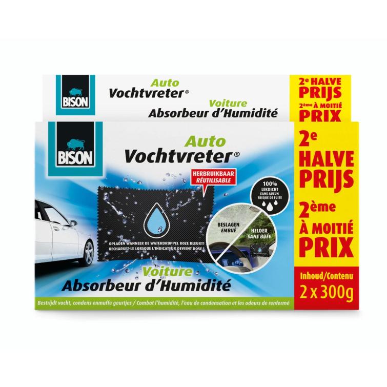 De nieuwe Bison vochtvreter voor in de auto. Het bestrijdt condens, vocht en muffe geurtjes. Super gemakkelijk in gebruik, 100% lekdicht en ook nog eens duurzaam doordat het herbruikbaar is. Nu in een voordelige promopack!