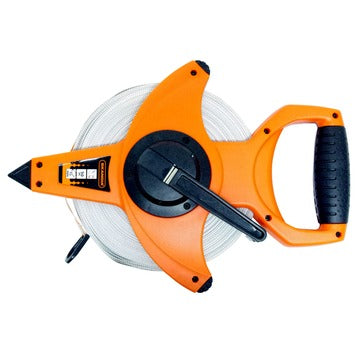 Skandia landmeter met een bereik van maximaal 50 meter, om buiten grote afstanden op te meten, zoals in tuinen, op bouwplaatsen en bij opritten. De landmeter heeft over de hele lengte een mm en cm verdeling, een bandbreedte van 13 mm en een inklapbare slinger. Met handig versneld opwindmechanisme (1:3), met één draai aan de slinger draait de haspel 3 keer. Uitgevoerd in een open stootvast kunststof ABS frame en een meetlint van slijtvast glasfiber. Door de aan het 0 punt gemonteerde oog kan één persoon de landmeter bedienen en opmeten.