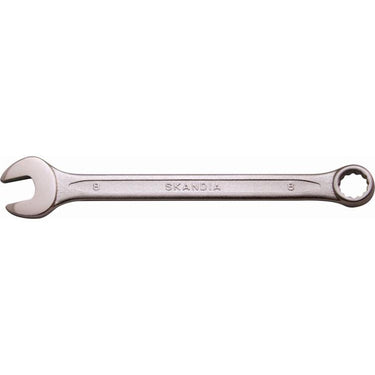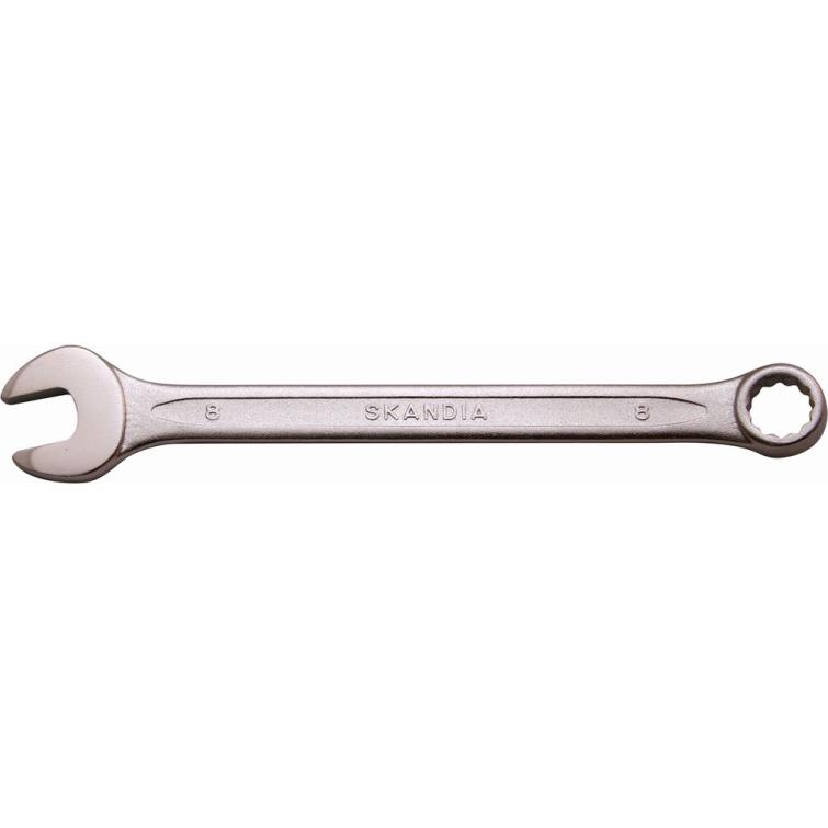 Steekringsleutel maat 8 mm. Beide sleutelkoppen staan onder een hoek van 15° voor een optimale toegankelijkheid. Vervaardigd uit chroom vanadium staal, mat verchroomd, met geslepen en dunne gepolijste bek. Met een 12-kantige ring om de grip tot vier keer te verhogen. De twaalfkantige ring staat 15° gebogen om de knokkels vrij te houden. Vervaardigd volgens DIN 3113. Totale lengte 120 mm.