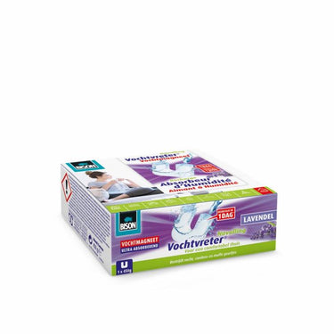 Overtollig vocht tast niet alleen het huis aan, maar ook de gezondheid. Er is sprake van een vochtprobleem als je last hebt van schimmel, muffe geurtjes, vochtige kleding en/of beslagen ramen (condens). De Bison Vochtvreter Vochtmagneet met lavendelgeur geeft dankzij de ultra absorberende werking al binnen 1 dag resultaat en bestrijdt effectief vocht, condens en muffe geurtjes overal in huis. Deze navulling lavendel heeft een inhoud van 450 gram.