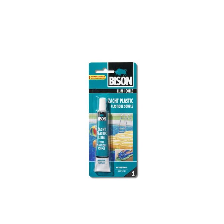 Bison lijm voor reparaties aan vinyl of zacht PVC-materiaal. Repareert onder andere opblaasbare boten, zwembadjes, zwembanden, strandballen, tentzeilen, waterbedden, regenkleding en vijverfolie.