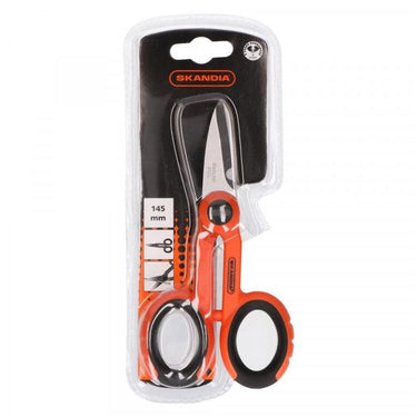 Deze Skandia klusschaar is een hoogwaardige en comfortabele universele schaar voor bijvoorbeeld elektriciëns of andere ambachtelijke en industriële toepassingen. De schaar is geschikt voor het knippen en strippen van kabels. De schaar is voorzien van een zeer comfortabele 2-componentenhandgreep met met anti-slip grip. De bek heeft een snede met een uitsparing die als draadafsnijder gebruikt kan worden. Scharnier voorzien van schroefverbinding, kan worden aangepast. Door de hoogwaardige materialen die gebruikt zijn is dit een krachtig en zeer robuust model.