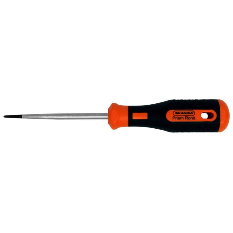 Priem, ook wel els genoemd. Rond model, dik 6 mm, klinglengte 100 mm, totale lengte 215 mm. De priem is vervaardigd van chroom vanadium staal, met een kunststof twee componenten anti-slip handvat met ophanggat. Kling extra nagehard met scherpe zwarte punt. Een priem wordt bijv. gebruikt om stikgaatjes te prikken bij leerbewerking, om gaatjes voor te prikken bij houtbewerking waardoor makkelijker een groter gat geboord kan worden met een boor en bij hout- en metaalbewerking om heel nauwkeurig te kunnen aftekenen (inkrassen).
