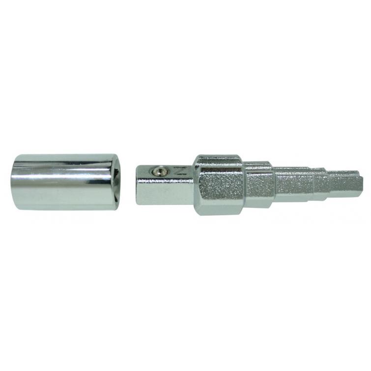 Skandia 4 in 1 radiatorsleutel voor het in- en uitdraaien van ventielnippels en kraanstukken in radiatoren. Geschikt voor de volgende maten: ⅜" - ½" - ¾" - 1". Wordt geleverd met een speciale losse adapter zodat deze radiatorsleutel op een standaard ½" ratelsleutel te gebruiken is. Geen speciale inwendige ratelsleutel nodig.