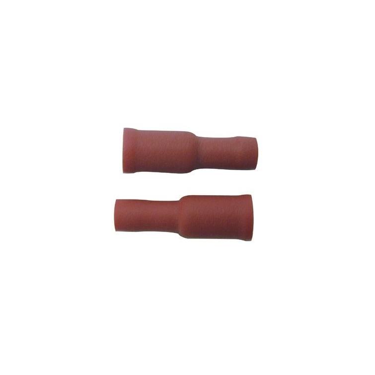 Skandia kabelschoen, kleur rood, geschikt voor elektriciteitsdraad van 0,5 t/m 1,5 mm², ronde stekerhuls, passend op onder andere een ronde steker, inhoud 10 stuks. Kabelschoenen worden onder andere veel gebruikt in huishoudelijke elektrische apparaten, auto's, motoren en boten om elektrische verbindingen te maken. Veel kabelschoenen worden speciaal toegepast bij deze verbindingen omdat ze weer eenvoudig zijn los te koppelen. Een kabelschoen wordt bevestigd met een kabelschoentang (krimptang). Met deze kabelschoentang wordt de huls van de kabelschoen, waarin de elektrische draad wordt gestoken, plat geperst (krimpen), waardoor een verbinding ontstaat tussen de draad met het kabelschoen.