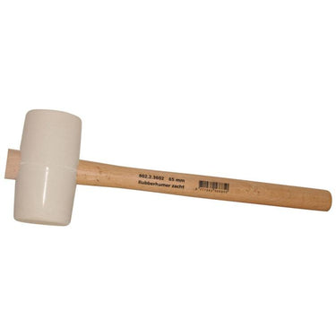 Rubberhamer, ook wel tegelhamer genoemd. Van wit verend rubber, met een vlakke en een halfronde kant. Wordt veel gebruikt om klinkers en tegels aan te slaan bij het leggen. Uitstekend geschikt om houten en metalen constructies die deukgevoelig zijn te monteren. Het witte rubber voorkomt zwarte strepen op de te leggen tegels. Deze hamer heeft een conische essenhouten steel. Deze hamer heeft een hardheid van 60-62áµ’ shore. Gewicht zonder steel 340 g. Lengte 110 mm. Diameter 65 mm (vlakke kant). Koplengte: 110 mm
